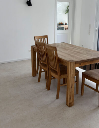 Der klare Vorteil einer Fliese im Wohnraum ist Ihre Beständigkeit und bei Bodenheizung Ihre Weitergabe der Wärme – und natürlich auch die Pflege: Eine Fliese im Wohnraum kann sowohl gewischt, gefegt und abgesaugt werden. Auch Krallen oder Absatzschuhe machen Fliesen nichts aus. Fliesen bieten eine hohe Beständigkeit.